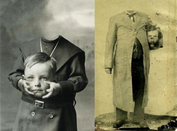 Ammo ajablanarli narsa shuki, o‘sha vaqtning ba’zi fotosuratlarida odamlar boshsiz, aniqrog‘i, tanadan tashqari bosh bilan tasvirlangan. Taxminlarga ko‘ra, fotograflar shunday oddiy hiyla bilan o‘ziga xoslikni va birovga o‘xshashni xohlamaydigan mijozlarni jalb qilishgan.
