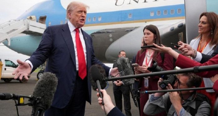 Safardan avval AQSh prezidenti Yevropa Ittifoqi bilan ilgari e’lon qilgan 30 foizlik boj stavkalarining kuchga kirishiga yo‘l qo‘ymaslik bo‘yicha kelishuvga erishish imkoniyatlarini “50 ga 50” deb baholagan edi.