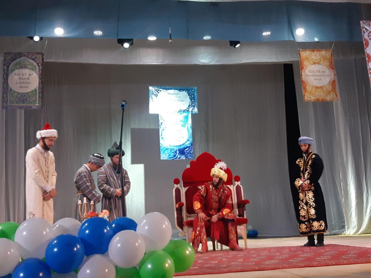 Tadbir avvalida O‘zbekiston tarixiga oid hunarmandchilik, kulolchilik buyumlari, tarixiy asarlar, qo‘lyozma asarlar, tarixiy davr haqidagi badiiy va ilmiy asarlar, devoriy gazetalar, tarixiy sur’atlar, tarixiy kiyimlar hamda tarixiy shaxslar, allomalarning portretlaridan iborat ko‘rgazmalar tashkil etildi. Mirzo Ulug‘bek xalq ta’limi bo‘limining ijtimoiy fanlar metodisti N.E.Rustamova tomonidan Prezidentimizning 2020 yil Oliy Majlisga qilgan Murojaatnomasining mazmun-mohiyati, jamiyatda amalga oshirilayotgan islohotlarning, xususan, maktab ta’limi sohasidagi islohotlarning ijtimoiy taraqqiyotimizga ta’siri haqida tadbir ishtirokchilariga fikrlar bildirdi. Tadbirda tuman tassarufidagi umumiy o‘rta ta’lim maktablarida tahsil olayotgan iqtidorli o‘quvchilar O‘zbekiston tarixiga oid tarixiy davrlar ya’ni 1. IX-XII asr – “Sharq o‘yg‘onish” davri, 2. XII-XV asr – “Buyuk Sulolalar” davri, 3. XVI-XVII asri – “Xonliklar davrining yuksalishi”, 4. XIX-XX asr – “Ma’rifatparvarlar” davri, 6. Mustaqil O‘zbekiston – “Milliy yuksalish sari” davrlarini sahna ko‘rinishlari orqali yoritdilar. Shonli tariximizning eng yorqin davrlaridagi tarixiy voqealar Mahmud G‘aznaviy, Abu Rayhon Beruniy, Abu Ali ibn Sino, Amir Temur, Mirzo Ulug‘bek, Nodiraxonim, shoira Uvaysiy, Abdulla Qodiriy, Abdulhamid Cho‘lpon va Mahmudxo‘ja Behbudiy obrazlari siymosida gavdalantirildi. Sahnaviy ko‘rinishlar iqtidorli o‘quvchilar tomonidan tayyorlangan kuy va qo‘shiqlarga ulanib ketdi. Shu davrlar bo‘yicha videotaqdimotlarni himoya qildilar. Tadbir boshlanganidan tugaguncha “Tarixiy obidalar tasviri” yo‘nalishida jarayonning o‘zida rassom-o‘quvchilar rasmlar chizishdi. Festival so‘nggida ishtirok etgan o‘qituvchi va o‘quvchilar “Eng yaxshi tarixiy davr videotaqdimoti”, “Eng yaxshi tarixiy davr yoritilgan sahna ko‘rinishi”, “Eng yaxshi tarixiy obidalar tasviri” nominasiyalari bo‘yicha taqdirlandilar.