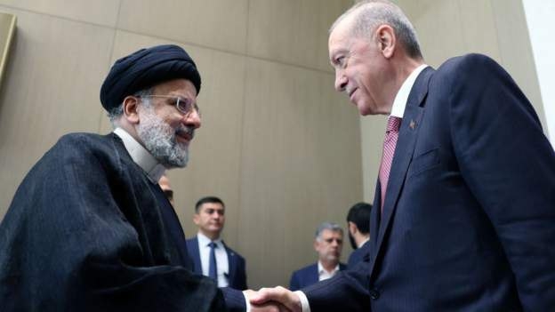 Erdo‘g‘an va Raisiy o‘rtasidagi uchrashuv O‘zbekiston poytaxti Toshkentda o‘tkazilgan Iqtisodiy hamkorlik tashkiloti sammiti doirasida bo‘lib o‘tdi.