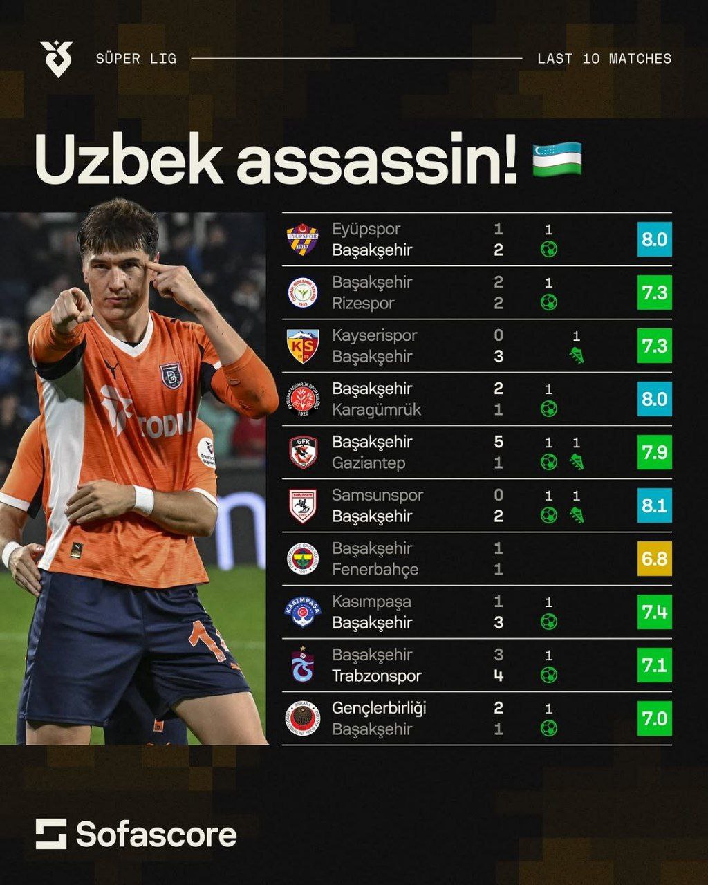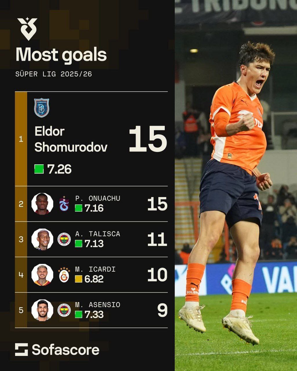 Jahonga mashhur SofaScore portali hozirda "Bashakshehir" safida faoliyatini davom ettirayotgan hamyurtimiz Eldor Shomurodovni e’tirof etdi.