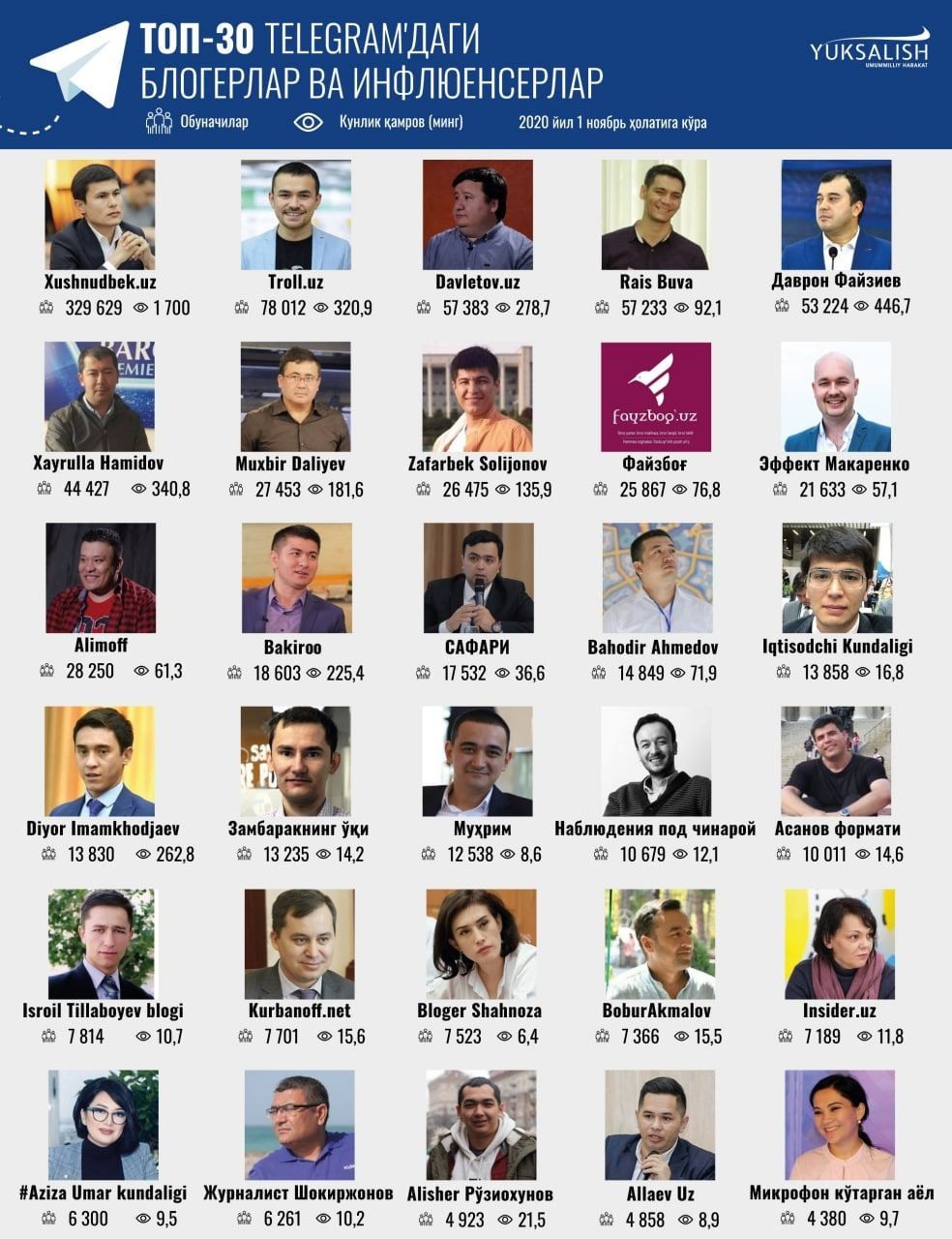 "Yuksalish" yurtimizdagi 30 nafar top blogerlarni e’lon qildi