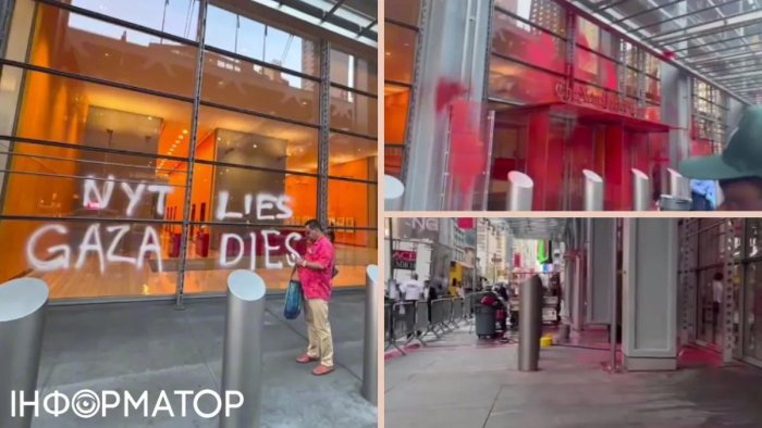 Нью-Йорк шаҳри марказидаги The New York Times офисига қизил бўёқ сепиб кетишди