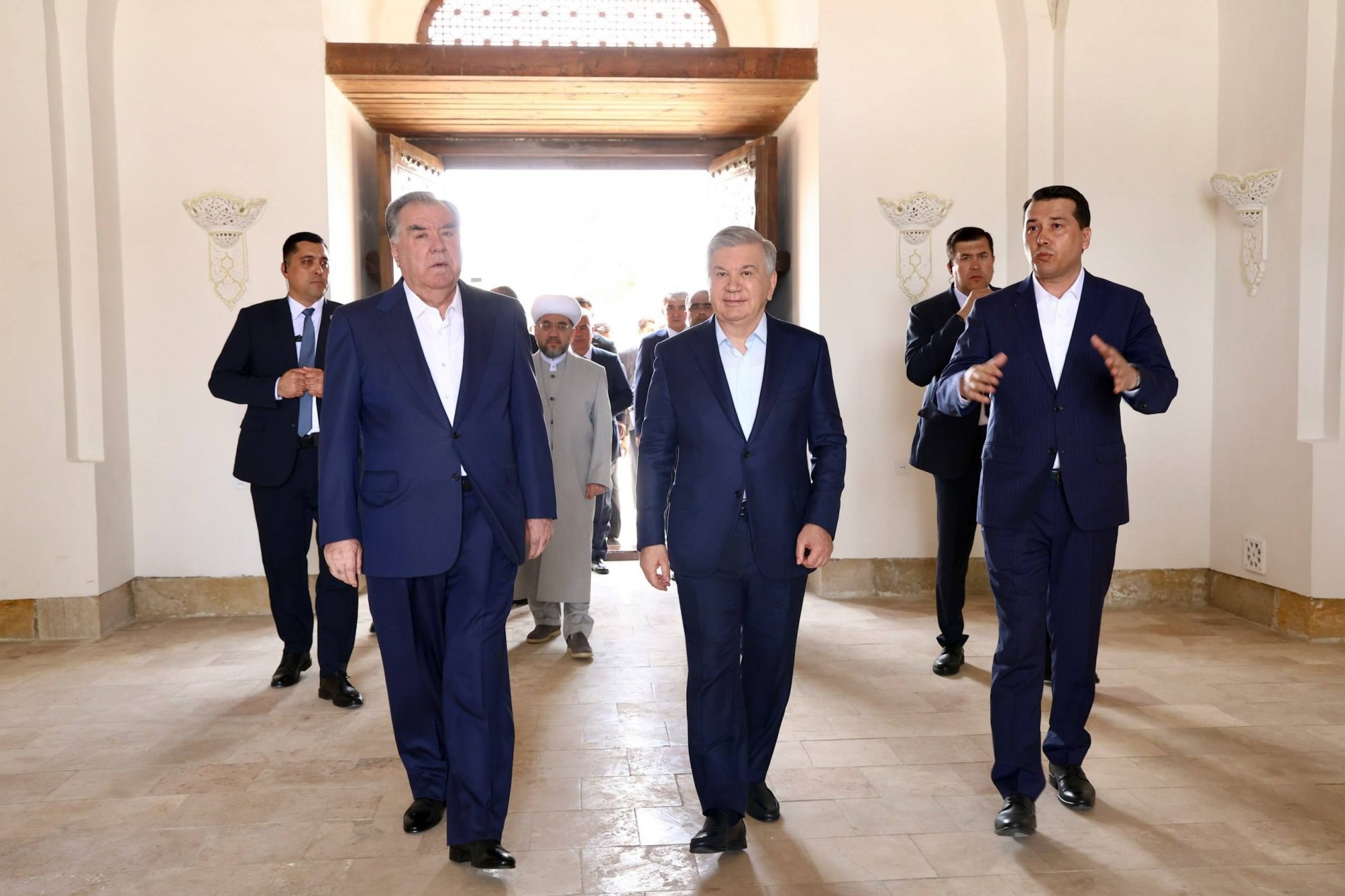 Шавкат Мирзиёев ва Имомали Раҳмон Бухородаги тарихий мажмуаларни зиёрат қилди