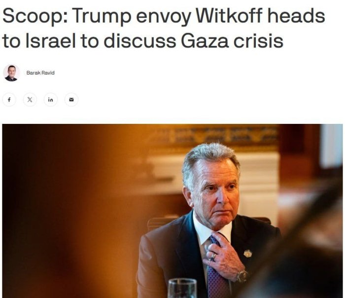 АҚШ президентининг махсус вакили Стив Уиткофф Ғазо секторидаги гуманитар инқирозни муҳокама қилиш учун Исроилга йўл олди, деб хабар бермоқда Ахios.